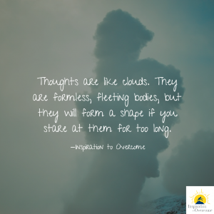| #34 | "Thoughts are like clouds. They are formless, fleeting bodies, but they will form a shape if you stare at them for too long." —Inspiration to Overcome | The longer you overthink an intrusive thought, the scarier it becomes. Thoughts have no meaning besides the meaning we give them. | ![]() | 2016/10/04 | #I2Oimage #I2Oquote #revised #e #rewrite |