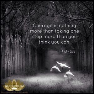 | #59 | "Courage is nothing more than taking one step more than you think you can." —Holly Lisle | Push yourself beyond the limits of emotion and you will give yourself reason to believe you can. | ![]() | 2016/10/29 | #n |