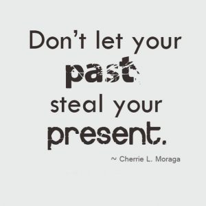 | #72 | "Don't let your past steal your present." —Cherrie L. Moraga | You cannot experience the past; it can only be experienced as thoughts in the present. Often these thoughts will generate feelings of regret, fear, guilt, hopelessness, or despair. Remember that these feelings have no power over what is happening in the present moment. (The same is true of anxious feelings stemming from future concerns.) Choose to respond with acceptance and and a focus on the present. | ![]() | 2016/11/14 | #c |