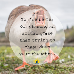 | #373 | "You’re better off chasing an actual goose than trying to chase down your thoughts." —Inspiration to Overcome | I know it’s hard not to react when they’re going berserk, but they won’t stop coming unless you let them go. | ![]() | 2020/01/15 | #ocdawareness #mentalhealthawareness |
