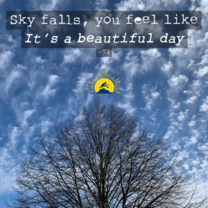 | #388 | "Sky falls, you feel like It's a beautiful day" —"Beautiful Day," U2 | The sky outside my house is beautiful even when it looks like its falling. Yours is beautiful too. #EnjoyTheLittleThings | ![]() | 2020/04/06 | #I2Oimage #COVID19 |